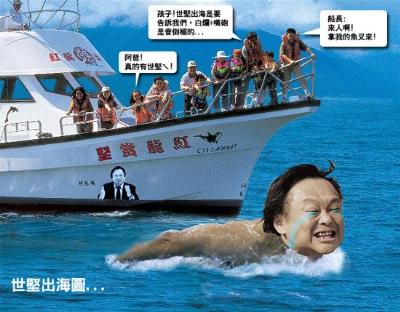 他說,整個(gè)跳海計(jì)劃,本來都已經(jīng)有所規(guī)劃和安排,包括他要租用水上摩托車騎到海中央去,然后跳海,接著再自行游泳返回陸地。不過,王世堅(jiān)說,現(xiàn)在媒體把地點(diǎn)和時(shí)間都曝了光,那個(gè)時(shí)候一定會有很多人租船租水上摩托車跟著看熱鬧,他擔(dān)心這個(gè)“應(yīng)媒體要求所演出的跳海計(jì)劃”,會造成不必要的危險(xiǎn)和復(fù)雜問題的衍生。