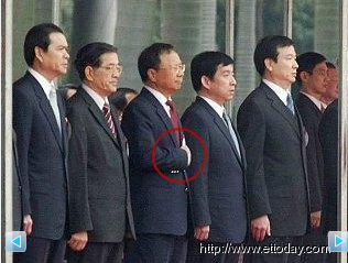 中新網(wǎng)1月28日電 在28日的一項(xiàng)“外事”活動(dòng)上,臺(tái)當(dāng)局“行政院長(zhǎng)”張俊雄率“部會(huì)首長(zhǎng)”與會(huì)。媒體記者發(fā)現(xiàn),在儀式行禮過(guò)程中,陳水扁以扶手禮致敬時(shí),“內(nèi)閣”成員個(gè)個(gè)比法大不同,“教育部長(zhǎng)”杜正勝則是給自己升官,也比了扶手禮,而“總統(tǒng)府副秘書(shū)長(zhǎng)”陳其邁與“新聞局長(zhǎng)”謝志偉則是變成了軍官,沒(méi)戴帽卻比出舉手禮。