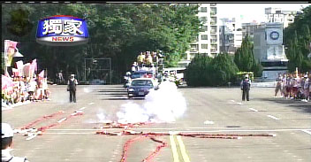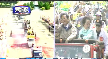 陳水扁和呂秀蓮的競選車隊(duì)經(jīng)過臺南市金華街,之所以布置這樣一個情境,為的就是嚴(yán)防“319槍擊事件”再度上演。