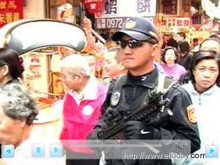 據(jù)臺(tái)灣東森新聞報(bào)道,謝長(zhǎng)廷一路和支持者寒喧握手、發(fā)放紅包,原本人潮密集的街道更是寸步難行,兩名特勤中隊(duì)隊(duì)員全副武裝隨侍在側(cè),就這么大剌剌的把MP5沖鋒槍和M4突擊步槍掛在胸前,拜年掃街的氣氛相當(dāng)詭異。