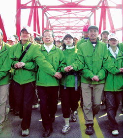 中新網(wǎng)2月18日電 據(jù)臺灣《中國時報》報道,選戰(zhàn)進入沖刺期。國民黨2008參選人馬英九將選戰(zhàn)重心南移,在云林、嘉義、臺南地區(qū)深耕,將于“二二八”紀念日當天,選擇南北追思祈安,先在嘉義“二二八”紀念公園追思受難者,之后再回臺北參加紀念活動。民進黨則將在臺北舉行“逆風行腳大會師”。