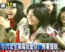報(bào)道稱,這名名叫陳琳璦的小女生高喊“我愛(ài)你”,連身經(jīng)百戰(zhàn)的馬英九也“凍不住”了,愣在那里,手中的麥克風(fēng)拿起來(lái)又放下,連話都說(shuō)不出來(lái),這個(gè)時(shí)候小女生竟然哭了。馬英九忙說(shuō):“不要哭,不要哭,我也愛(ài)你!