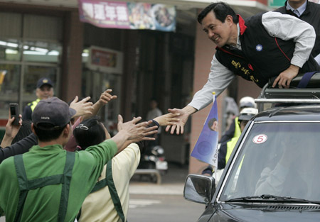 據(jù)臺灣媒體報道,馬英九陣營除規(guī)劃在臺北縣、臺南縣舉辦10萬人大型造勢活動外,也將視對手造勢規(guī)模,彈性擴大造勢活動。馬陣營一名幕僚表示,艱困選區(qū)如嘉義縣市和臺南縣市,仍將是最后階段的拜票重點。馬英九競選副手蕭萬長打算與馬英九互補,密集拜會中南部本土企業(yè)與當?shù)厥思,搶攻綠營票倉。