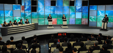 圖為馬英九與謝長廷第二場電視辯論會場情形。(圖:“中央社”)