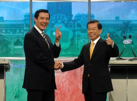 中新網(wǎng)3月10日電 二00八年臺(tái)灣地區(qū)領(lǐng)導(dǎo)人選舉候選人第二場電視辯論會(huì)九日登場,謝長廷與馬英九依舊在一中市場、開放陸資、兩岸經(jīng)貿(mào)等舊議題上糾纏,不過,對陳水扁八年執(zhí)政的集體不滿,竟成為謝馬難得的共識(shí)。