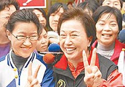國(guó)民黨“副總統(tǒng)”候選人蕭萬(wàn)長(zhǎng)夫人朱俶賢11日一大早就帶著女兒蕭如芬站在路口,向過(guò)往的用路人拜票,朱俶賢強(qiáng)調(diào),她要用誠(chéng)意和實(shí)際行動(dòng)來(lái)感動(dòng)選民,激發(fā)選民的投票意愿。