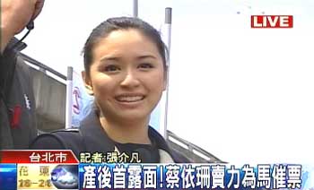 產(chǎn)后首露面 連戰(zhàn)兒媳蔡依珊賣力為馬英九催票(圖)