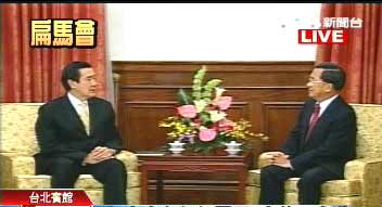 在陳水扁邀請下,馬英九今天上午10點半在臺北賓館會面,雙方展開3對3的會談。