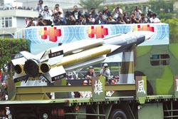 圖為臺(tái)自制研發(fā)的“雄風(fēng)三型”導(dǎo)彈。(《中國(guó)時(shí)報(bào)》圖)
