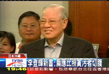 據(jù)臺灣TVBS報道,有記者問:“你說如果貪污都要切腹對不對?”李登輝說:“對啊,沒切腹不行!人就要客氣一點、謙卑一點,不要拿人家的錢在那邊大聲喊!