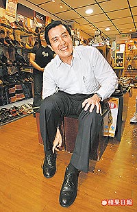 馬英九買皮鞋,鼓勵民眾多消費。(圖:臺灣《蘋果日報》)