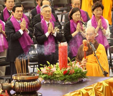 參加法會(huì),馬英九沒談?wù),記者沒機(jī)會(huì)問他和蔡英文同臺(tái)尷不尷尬,不過答案恐怕也是阿彌陀佛。