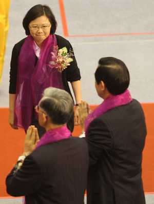 蔡英文雖說不尷尬,但兩人在后臺(tái),只禮貌握手,沒有任何交談。