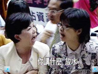 報(bào)道說(shuō),會(huì)議主席宣布休息協(xié)商,卻反而制造了藍(lán)綠雙方口水大戰(zhàn)的絕佳舞臺(tái)。占人數(shù)優(yōu)勢(shì)的藍(lán)營(yíng)決定按原定議程審理教育部門預(yù)算,沖突就這么發(fā)生。兩個(gè)星期前是打巴掌,這回拉扯近乎打群架,“立法院”儼然成為女人的戰(zhàn)場(chǎng)。