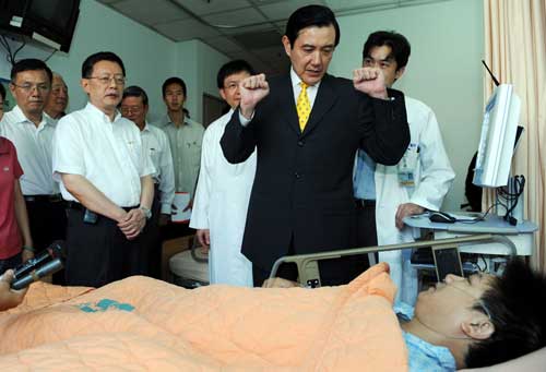 馬英九昨天下午在王卓鈞等人陪同下,到新光醫(yī)院探視臺北市警局大同分局偵查隊(duì)小隊(duì)長廖瑞隆等執(zhí)勤受傷員警,并致贈慰問金。