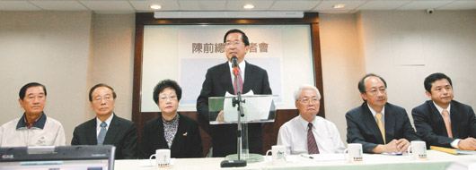 陳水扁記者會陣仗驚人,“后扁時期”的“府院黨”巨頭都出面相挺,陳水扁的用意不只是拉高和馬英九當局的對抗力道,恐怕也在暗示民進黨主席蔡英文扁家軍在黨內(nèi)的政治實力。