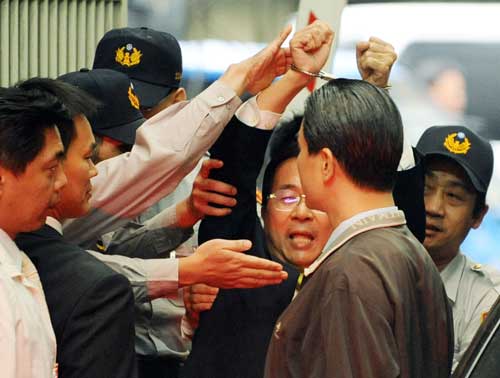 據(jù)“中央社”報道,臺灣檢方特偵組偵辦陳水扁家庭洗錢疑案及“國務(wù)機要費”案,今天再傳喚陳水扁到案。經(jīng)六個多小時訊問后,檢察官認為陳水扁涉嫌“貪污治罪條例”等罪,犯罪嫌疑重大,有串證之虞,且所犯為最輕本刑五年以上重罪,下午向法院聲請羈押禁見。陳水扁成為臺灣首位被聲押的前領(lǐng)導(dǎo)人。