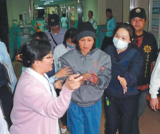 蘇治芬在檢方訊問(wèn)結(jié)束后約一個(gè)半小時(shí),出現(xiàn)身體不適,所方隨即安排救護(hù)車,把她送往醫(yī)院。蘇治芬下車后,多次搖著被銬雙手,表明不愿躺上推床,堅(jiān)持走入病房。因身體虛弱,一路由醫(yī)護(hù)人員扶著。