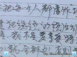 臺灣“今日新聞”報道,陳水扁在醫(yī)院3天洋洋灑灑寫了兩萬多字的萬言書,但是根據(jù)看守所規(guī)定,收容人不能帶筆等尖銳物品以免危險,所以根據(jù)了解他是用去掉筆管的筆芯來寫字,能這樣寫出2萬5千字,真是“毅力驚人”。