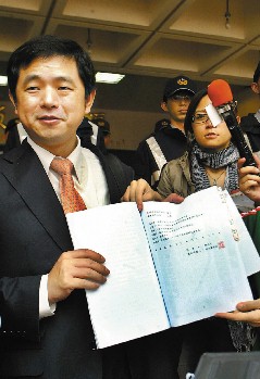 陳水扁律師鄭文龍(左)。圖片來源:臺灣《聯(lián)合晚報》