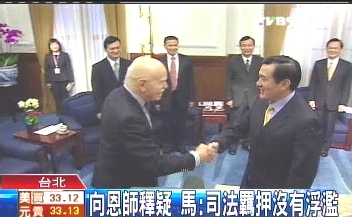 中新網(wǎng)12月16日電 馬英九在美求學(xué)時(shí)的老師孔杰榮質(zhì)疑臺(tái)相關(guān)部門對(duì)陳水扁案件司法羈押的正當(dāng)性;今天馬英九接見這位恩師時(shí)澄清,上手銬不是針對(duì)個(gè)人,臺(tái)灣司法羈押也沒有浮濫的情況。