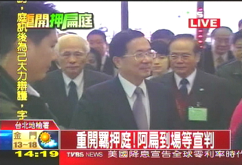 陳水扁因涉及多起弊案于11月12日被收押,12月12日特偵組依貪污、洗錢等罪起訴陳水扁等人后,案件移審法院,檢方并向法院聲請繼續(xù)羈押陳水扁。但是臺北地院審理后于13日凌晨當(dāng)庭釋放陳水扁,而且不用具保,僅限制出境、出海、住居。