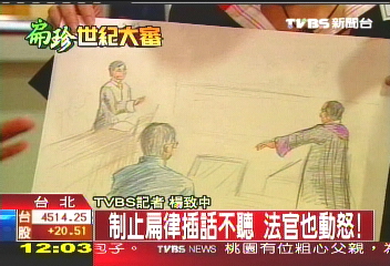 TVBS記者口述:“關(guān)于陳水扁的庭期里面,這一次應(yīng)該是最火爆的一次,當(dāng)時(shí)檢察官他是站起來(lái),他的雙手指著陳水扁,昨天的身體狀況我們也發(fā)現(xiàn)了,確實(shí)他是不太好,但是為什么律師要發(fā)言那么久,這個(gè)時(shí)候律師鄭文龍把手舉起來(lái)一直搖手說(shuō),沒(méi)有啊、沒(méi)有啊!
