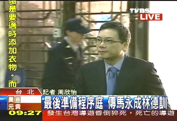 中新網(wǎng)3月17日電 據(jù)臺灣TVBS報道,臺北地方法院17日上午審理機要費案,傳喚前后任前陳水扁辦公室主任馬永成跟林德訓(xùn),而今天也是兩人最后一次準備程序庭,下一次將進行實質(zhì)審理。上個月的準備庭中,馬林二人申請與扁任內(nèi)出納陳鎮(zhèn)慧等11位證人對質(zhì),陳鎮(zhèn)慧要在上午與馬林對質(zhì),下午跟吳淑珍對質(zhì)。