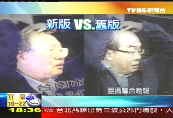 據(jù)臺(tái)灣TVBS報(bào)道,黃永田又有新名片,乍看好像是原本那張掀掉邱毅發(fā)片的新聞?wù)掌贿^仔細(xì)看,邱毅變了一張臉,變成一位老先生,比對(duì)一下新舊版本,明顯發(fā)現(xiàn)兩張臉孔大不同。
