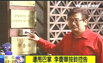 中新網(wǎng)4月22日電 據(jù)臺灣TVBS報道,國民黨“立委”李慶華今日在“立法院”里被民進黨“立委”邱議瑩甩了一巴掌,李慶華下午2點多到法院按鈴控告邱議瑩公然侮辱。