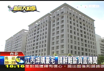 據(jù)臺(tái)灣TVBS報(bào)道,海基會(huì)董事長(zhǎng)江丙坤請(qǐng)辭當(dāng)天,傳出原本有媒體要再報(bào)導(dǎo)他的負(fù)面消息,而這負(fù)面消息就是江丙坤家族買豪宅,江丙坤非常在意,盡管請(qǐng)辭心意堅(jiān)決,還是親自出面說(shuō)明買屋經(jīng)過(guò),而且強(qiáng)調(diào)買賣資金沒(méi)有問(wèn)題,是他跟子女想要重溫一家人聚在一起的感覺(jué),才陸續(xù)把原有的房產(chǎn)賣出,合資購(gòu)買新屋,不過(guò)江丙坤說(shuō),其實(shí)他現(xiàn)在住的房子,比新買的房子還要好。