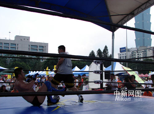 九個展區(qū)、一百六十二個攤位,處處都很熱鬧。臺灣明年九月要舉辦“聽障奧運”,殘障人士組織的“阿甘精神發(fā)展協(xié)會”的攤位放在很顯眼的地方;“臺灣摔角聯(lián)盟”搭起了高臺,正在現(xiàn)場示范教學(xué),大力士裝著一次又一次地被重重摔在角斗臺上,惹得幾個學(xué)生模樣的小孩蠢蠢欲動,爭著要跟大力士切搓。