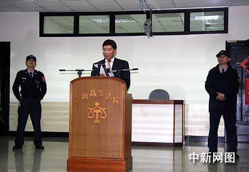 一月七日中午,臺灣高等法院駁回陳水扁對二度遭到羈押的抗告,高院認(rèn)為陳水扁委任律師所提抗告沒有理由,因此予以駁回。全案就羈押部分不得再提抗告。圖為臺灣高等法院發(fā)言人溫耀源在記者會上宣布裁定結(jié)果并解釋裁定書。 (圖文/中新社記者 陳立宇)