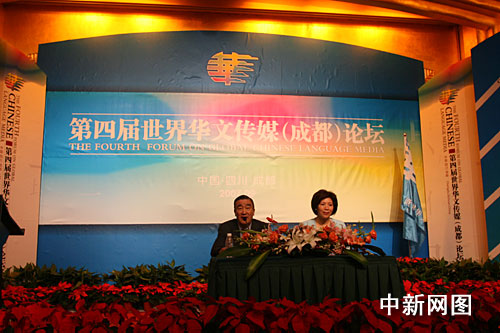 9月4日上午8時30分,第四屆世界華文傳媒論壇大會舉行“部長論壇”。中國奧委會主席、北京奧組委主席助理屠銘德先生;北京市新聞辦主任、北京市奧組委新聞宣傳部常務(wù)副部長王惠女士正在為大家講述奧運。中新社 郭晉嘉 攝。