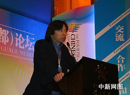 最后一點,就是海外華文媒體怎么樣跟中新社共同一塊做一些事情。我上午就說過了,中新社牽頭,我們可以建立一個網(wǎng)絡(luò)平臺,也許一個星期就可以做出來,鏈接式的,把世界華文媒體,用點擊的方式,比如西班牙,一點擊,當(dāng)?shù)氐膱蠹埦涂梢猿尸F(xiàn)出來,這給中國人華文媒體在海外交流信息是一個很好的平臺,同時中新社也可以形成一個把大家結(jié)合起來的團隊,共同去做這件事情,同時還有一些商業(yè)的合作機會,包括土地、房屋買賣和旅游。假設(shè)我去歐洲旅游的時候,我只要是有這么一個平臺,我一點擊就可以從那邊拿到東西。再一個,大家在海外去做華文媒體的時候,做LOGO新聞的時候,通常會東抄西抄,但是互相抄的時候就有重復(fù)了,我隨便看一下,假設(shè)是德國的報紙我看得津津有味,我在美國呆著,從來不知道德國的報紙是什么樣。我基本上是這么幾點,和大家分享一下中國的問題和可以操作的解決方式。謝謝。