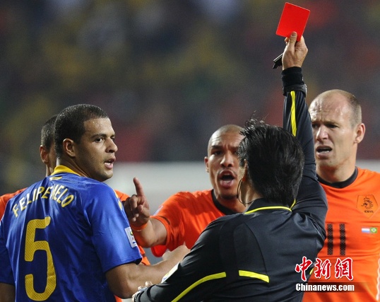 中新網(wǎng)7月3日電 巴西隊(duì)1比2被荷蘭隊(duì)淘汰,球隊(duì)的中場大將梅洛成為頭號罪人。不過,賽后這名在比賽中既擺烏龍又吃紅牌的后腰表示羅本太愛表演,自己是冤枉的,如果自己玩真的,羅本當(dāng)場就給廢了。