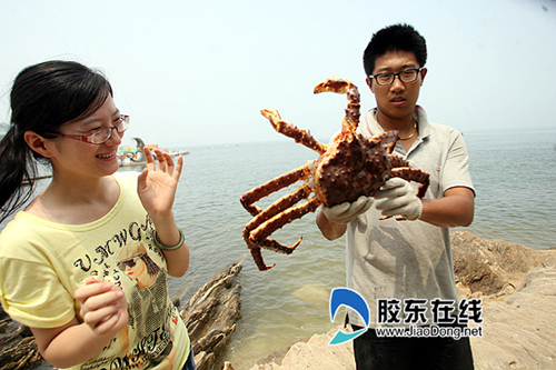 “一只螃蟹6斤重,展開之后一米長,和章魚哥一樣,擅長預(yù)測……。”負(fù)責(zé)看養(yǎng)帝王蟹的煙臺市民小魏這樣告訴記者。7月13日,本網(wǎng)以《好大一只帝王蟹 重3公斤價(jià)值1700元》為題報(bào)道了市民矯先生從俄羅斯購進(jìn)的大螃蟹,一時(shí)間吸引了眾多看稀奇的游客和市民。相隔不到一個(gè)星期,其中一只名叫“霸王”的超大螃蟹爆出猛料,因?yàn)樗蚴澜绫餍潜A_章魚哥發(fā)出挑戰(zhàn),預(yù)測所有魯能比賽。