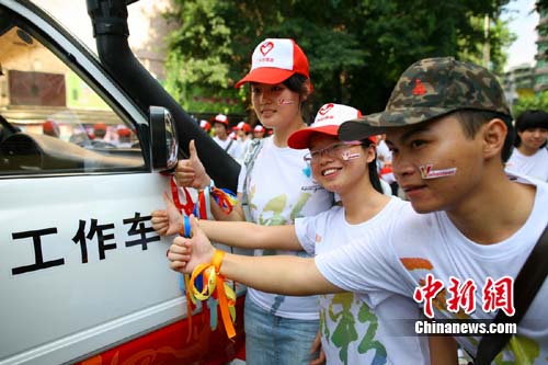 從8月3日開始,主辦方將在廣州20個“V風(fēng)驛站”向廣大車主免費派發(fā)“V風(fēng)車貼”和“V風(fēng)彩帶”,派發(fā)總數(shù)達近百萬。屆時,2000名V風(fēng)行動志愿者將穿志愿服、戴“志愿彩”、行“志愿禮”,進駐各大“V風(fēng)驛站”,親手為志愿車主貼車貼、掛彩帶。