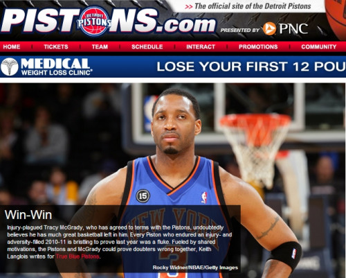 中新網(wǎng)8月11日電 昨日據(jù)雅虎體育報(bào)道,特雷西-麥克格雷迪正式以老將底薪合同與底特律活塞簽約1年。