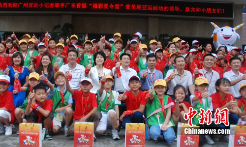 中新網(wǎng)廣州8月19日電 (記者 莫非 程景偉)“這是一次令人難忘的活動,我們了解有關(guān)亞運的知識、參觀亞運訓(xùn)練場,還了解了運動員如何通過訓(xùn)練,換來好成績!眮碜曰洷鄙仃P(guān)的留守兒童劉梅霞告訴記者。19日下午,由廣東團省委、廣東省福彩發(fā)行中心等單位聯(lián)合舉辦的“我為亞運添光彩”——廣州亞運小記者牽手廣東“福彩夏令營”營員迎亞運活動在冠軍訓(xùn)練營——廣州體育職業(yè)技術(shù)學(xué)院舉行。