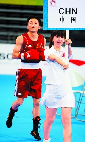 武搏運動會拳擊比賽昨晚在奧體中心打響。拳擊項目形象大使、北京奧運會冠軍鄒市明亮相男子46至49公斤級1/4決賽,以13比1的巨大優(yōu)勢擊敗一名波蘭選手挺進半決賽。別看小鄒在拳臺上揮拳虎虎生風(fēng),但當記者提起前來為他助陣的未婚妻時,“拳王”竟然羞紅了臉。