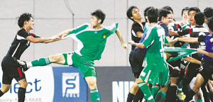 這是新聯(lián)賽近年來首次發(fā)生球員集體毆斗事件。北京國安隊與幼獅隊前晚的比賽進行到第89分鐘時,雙方突然爆發(fā)肢體沖突。據(jù)新加坡當?shù)孛襟w介紹,這次沖突的起因是幼獅隊終場前扳平比分的那個進球,幼獅隊一方有犯規(guī)動作,北京國安二隊認為進球無效。但是裁判認定進球有效,讓本來就已經(jīng)氣憤的國安二隊球員最終把場面演變成了斗毆。