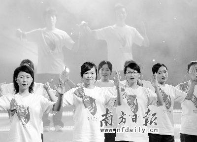 大學(xué)生們晚會現(xiàn)場學(xué)習(xí)手語,為亞運(yùn)會到來做全面準(zhǔn)備。南方日報記者王輝攝