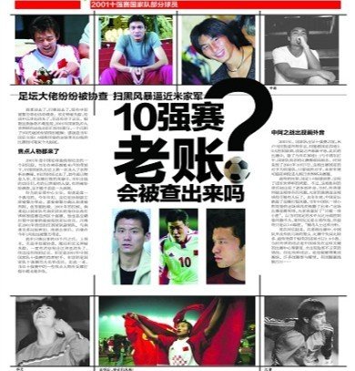 目前來看,反賭打假依然沒有停止的跡象,因為被協(xié)查的申思,至少給人們的感覺并不像是傳統(tǒng)中的那種涉及假賭類型的球員。祁宏也是如此,他神秘失蹤,但大家依舊還記得這位在當(dāng)年十強(qiáng)賽上的陽光男孩。不過,隨著申思被協(xié)查,祁宏消失,這都推翻了人們以往的印象。這說明,涉及到反賭的漩渦中,不管是誰,警方在得到線索后必將嚴(yán)查到底;氐2001年的十強(qiáng)賽上,南勇已經(jīng)進(jìn)去了,呂鋒也進(jìn)去了,申思被協(xié)查,祁宏又不見蹤影,再加上傳說中未被證實的江津,2001年十強(qiáng)賽的功臣們大有前仆后繼的味道。在這個過程中,并不排除當(dāng)年的主力隊員步這些人后塵的可能。那么,圍繞當(dāng)年中國與阿曼一戰(zhàn)的前前后后,誰還有可能在反賭打假風(fēng)暴中被協(xié)查呢?“那天澳門莊家飛到沈陽,直接做的這場比賽(2001年10月7日中國隊主場與阿曼隊比賽),F帶頭串通球員,大多數(shù)人都押錢了”。這是關(guān)于中國隊當(dāng)年與阿曼隊比賽有可能涉及到問題的一段描述,當(dāng)然,這也是一種說法,在沒有被證實之前,只有涉及到問題的當(dāng)事人最清楚。