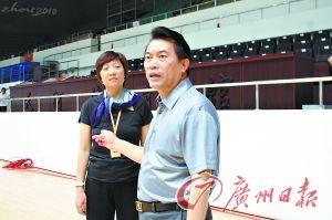 國家體育總局乒羽中心主任劉鳳巖(右)與天河體育館團(tuán)隊主任關(guān)渭貞在演練現(xiàn)場