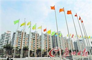 廣州亞運(yùn)城運(yùn)動(dòng)員村的升旗廣場(chǎng)上彩旗飄飄,3天后,廣州亞運(yùn)城運(yùn)動(dòng)員村將正式開村