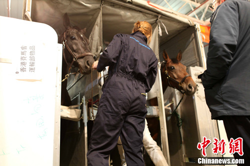 中新網(wǎng)廣州11月4日電 (唐貴江 張瑞)記者今日從廣州白云出入境邊防檢查站獲悉,廣州亞運(yùn)會(huì)馬術(shù)比賽部分馬匹于11月4日凌晨從廣州白云國(guó)際機(jī)場(chǎng)入境,共有9匹賽馬和6名韓國(guó)籍馬童一同抵達(dá)廣州。