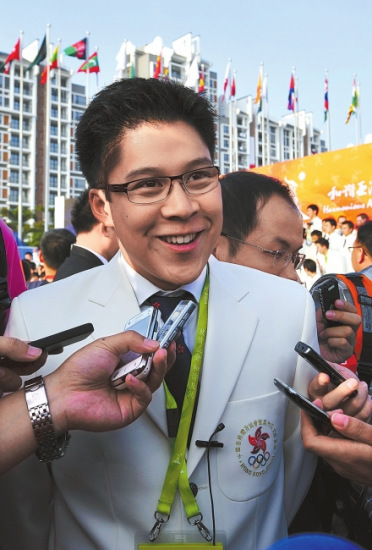 升旗儀式結(jié)束后,霍啟剛便和香港代表團(tuán)的運動員們簇?fù)碓谝黄鸷嫌傲裟,作為代表團(tuán)副團(tuán)長的他,自然沒有忘記自己的身份!斑@一次你會去看跳水嗎?”當(dāng)華西都市報記者將這個問題拋給霍啟剛時,他笑了一笑:“我就知道你要問我這個問題,在香港我就一直被問這個問題,到這里來還是被問這個問題,哈哈!被魡偟钠胀ㄔ挿浅(biāo)準(zhǔn),周圍的香港媒體聽到了霍啟剛這樣回答,也都笑了起來。
