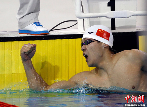 中新網(wǎng)廣州11月14日電 (記者 沈嘉)14日晚,目標(biāo)直指2012年倫敦奧運(yùn)會(huì)的“日本蛙王”北島康介在廣州亞運(yùn)會(huì)的泳池中栽了跟頭。在男子50米蛙泳項(xiàng)目中戰(zhàn)勝他的是中國(guó)23歲的游泳選手謝智。