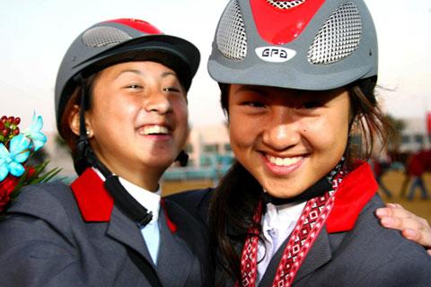 這對21歲的姐妹從9歲起開始騎馬,到現(xiàn)在已經(jīng)12年了。2006年,當(dāng)時只有17歲的兩姐妹首次代表中華臺北隊參加多哈亞運會,陳少曼奪得場地障礙賽銀牌,陳少喬奪得個人第4,一時間蜚聲華人騎術(shù)圈。雖說是出身億萬富豪之家,但兩姐妹沒有半點嬌小姐的樣子。頭盔、白馬褲、馬靴,高挑的身材,兩姐妹在駿馬飛馳的賽場上格外英姿颯爽。